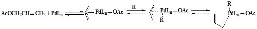 Общий характер диспропорционирования водорода между η3-аллильными лигандами подтвержден для комплексов различных переходных металлов Со, Fe, Ni, Rh, Pd и Pt 19 20 21. Таким образом, в работе Берселлини и сотрудников 15 показана η3 – η1 – изомеризацию аллилиьного лиганда в комплексах палладия в присутствии непредельных углеводородов.