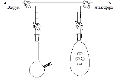 Исследования проводили в термостатированном вакуумируемом реакторе, снабженном магнитной мешалкой и устройством для отбора проб (рис.2.1). После загрузки всех компонентов реактор обескислороживали. Реакцию проводили в атмосфере монооксида (диоксида) углерода при варьировании температуры от 25 до 650С. Соотношение исходных реагентов: НБД/АФ=1/1, kat/НБД=1/10, ТФФ/ Pd3(OAc) 6=2/1. Растворитель – ацетонитрил или метиловый спирт – 0,5 мл.