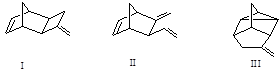 Многие продукты аллилирования НБД аллилформиатом и аллилацетатом имеют одинаковое строение. Это моноаддукты I – III, характеризующиеся молекулярной массой 132, и пространственные изомеры продуктов двойного аллилирования НБД IV – VI с массами 172 (таблица 3).