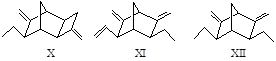 Новые соединения при использованиии АФ имеют массы 134, 174 и 176. Очевидно они образуются при гидрировании I, II, V, VI. Гидрированию преимущественно подвергаются соединения, имеющие активную внутрициклическую двойную связь (I и II), или вещества, содержащие винильные группы (I, V, VI). Продукты гидрирования метиленовых групп в указанных условиях не наблюдаются.
