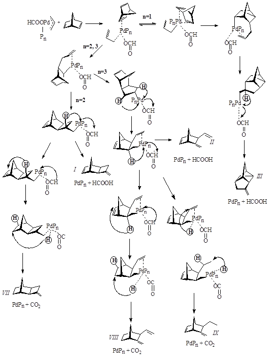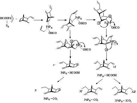 Дополнив предложенный ранее механизм каталитического аллилирования НБД аллилацетатом можно объяснить образование всех наблюдаемых продуктов (рис.2).