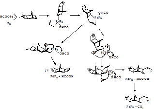 Помимо указанных соединений обнаружены продукты присоединения АФ к НБД (XIII и XIV), а также в незначительных количествах (2 – 5%) норборнен. В газовой фазе обнаружено до 3% углекислого газа СО2.