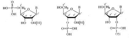 (где С — первичный или вторичный атомы углерода остатка углевода). При гидролизе ДНК и РНК в зависимости от условий реакции, образуются нуклеотиды с разным положением фосфатного остатка: