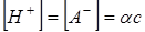 Рассмотрим процесс диссоциации электролита НА с концентрацией с и степенью диссоциации