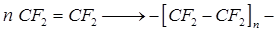 Политетрафторэтилен (ПТФЭ) получают полимеризацией исходного мономера – тетрафторэтилена (ТФЭ) различными методами в виде рыхлого волокнистого порошка или белой, либо желтоватой непрозрачной водной дисперсии, из которой при необходимости осаждают тонкодисперсный порошок полимера с частицами размером 0,1 – 0,3 мкм, согласно схеме: