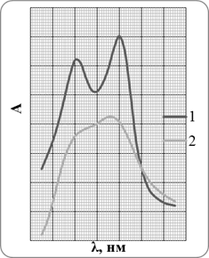 Рисунок 2.1. Спектры поглощения панатов Ni – 1 и Cu – 2
