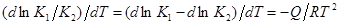 . Отсюда можно выразить А. Зная А, по уравнению (1) или (2) вычисляют В. Уравнение Аррениуса может быть получено т/д-им выводом из уравнения изобары (изохоры) хим. реакции. Опуская индексы, характеризующие условия протекания реакции, это уравнение записывается: