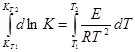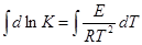 (1), где К – константа скорости хим. реакции. Энергетическая величина Е в этом уравнение называется энергией активации. Полученное уравнение описывает зависимость К хим. реакции от температуры. Разделив переменные и проинтегрировав, получим: