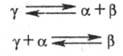 В простейшем случае, если на основе компонентов А и В возможно образование жидкого раствора L и двух твердых растворов a и b, эвтектического и перитектического фазовых равновесий можно записать соответственно в виде реакций: