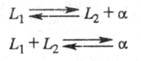При наличии в некотором температурно-концентрационном интервале двух жидких фаз L1 и L2 и одной твердой (напр., а) возможны трехфазные равновесия, называют монотектическое и синтектическое: