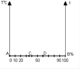 Каждая точка на оси абсцисс соответствует определённому содержанию каждого компонента. Общее содержание компонентов в сплаве - 100%.