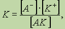 Поскольку диссоциация является обратимым равновесным процессом, то к этой реакции применим закон действующих масс, и можно определить константу равновесия как