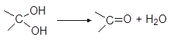 Гидроксильные группы могут находиться лишь у разных атомов углерода (правило Эрленмеера). Если две гидроксильные группы оказываются у одного атома углерода, то они немедленно отщепляют воду: