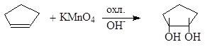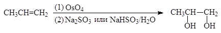 В промышленности этиленгликоль получают исключительно гидратацией окиси этилена. Другие 1,2-диолы (гликоли) могут быть получены окислением алкенов перманганатом калия или тетрокисдом осмия: