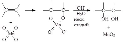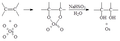 Обе гидроксильные группы присоединяются к двойной связи с одной стороны (цис-присоединение). Обе эти реакции представляют собой син гидроксилирование.