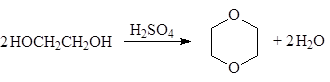 Дегидратация этиленгликоля зависит от условий ее проведения. Так, в присутствии небольших количеств серной кислоты при нагревании происходит межмолекулярная реакция и образуется диоксан: