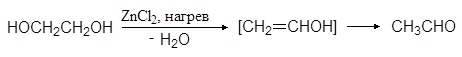 При нагревании с хлоридом цинка дегидратация происходит внутримолекулярно и приводит к образованию ацетальдегида: