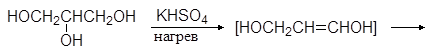 Отщепление воды от диолов и полиолов в первую очередь будет проходить внутримолекулярно. Так, при дегидратации глицерина (нагревание с гидросульфатом калия) образуется акролеин: