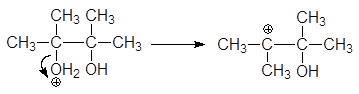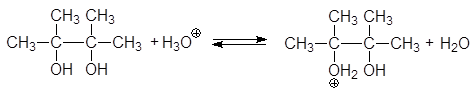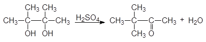 Дегидратация пинакона в присутствии кислоты сопровождается пинаколиновой перегруппировкой,
