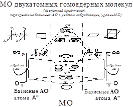 Двухатомные гомоядерные молекулы. Гибридизация орбиталей: -модельный случай у плоского ротатора. Кривая зависимости ПИ(Z) для 2s-2p АО и гибридизация (s±p)-АО у атомов элементов 2-го периода. Пиктограммы гибридных АО.