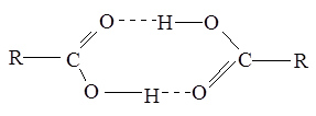 Межмолекулярные водородные связи, возникающие между молекулами карбоновых кислот, настолько прочны, что даже в газообразном состоянии значительная часть молекул существует в виде димеров: