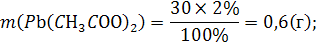 312. Слили 30 г 2 %-ного раствора ацетата свинца Pb(CH3COO)2 и 50 мл 1 М раствора иодоводородной кислоты HI. Определите массу осадка иодида свинца.