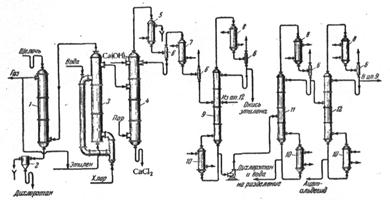 Рис. 2.1. Схема производства окиси этилена непрерывным методом через этиленхлоргидрин.