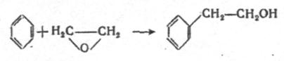 Окись этилена способна присоединять углеводороды. Так в присутствии безводного хлорида алюминия окись этилена с бензолом образует
