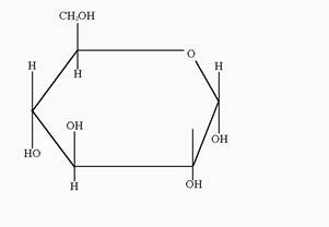 Глюкоза — моносахарид, одна из восьми изомерных альдогексоз. Молярная масса 180 г/моль. Глюкоза в виде D-формы (декстоза, виноградный сахар) является самым распространённым углеводом. D-глюкоза (обычно её называют просто глюкозой) встречается в свободном виде и в виде олигосахаридов (тростниковый сахар, молочный сахар), полисахаридов (крахмал, гликоген, целлюлоза, декстран), гликозидов и других производных. В свободном виде D-глюкоза содержится в плодах, цветах и других органах растений, а также в животных тканях (в крови, мозгу и др.). D-глюкоза является важнейшим источником энергии в организмах животных и микроорганизмов. Как и другие моносахариды D-глюкоза образует несколько форм. Кристаллическая D-глюкоза получена в 2-х формах: a-D-глюкоза (рисунок 1) и b-D-глюкоза (рисунок 2).