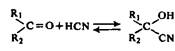 При определении суммарного содержания карбонильных групп с помощью реакции присоединения чаще всего используют цианид водорода