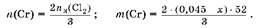 Пусть ra2(Cl2)ζ, моль, тогда ra3(Cl2)ζ (0,045 —,)моль;