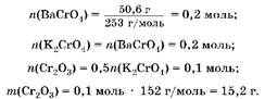 Задача 4. Продукты реакции, образовавшиеся при сплавлении смеси, содержащей оксид хрома(Ш), гидроксид калия и хлорат калия в стехиометрических количествах, растворили в воде и добавили избыток раствора хлорида бария. При этом образовался осадок массой 50,6 г. Найдите массу оксида хрома(Ш) в смеси.