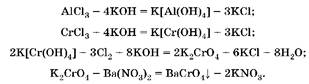 1. В избытке щелочи образуются гидроксокомплексы и алюминия, и хрома(Ш), но с хлорной водой реагирует только гидроксо-комплекс хрома(Ш):
