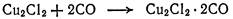 Оксид углерода поглощается аммиачным раствором хлорида меди(1) по реакции: