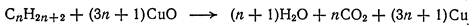 Предельные углеводородные газы сжигают после определения водорода в той же трубке с оксидом меди (II) при 900—950 °С. При сгорании образуются вода и диоксид углерода, а в результате термической диссоциации оксида меди(II) образуется кислород: