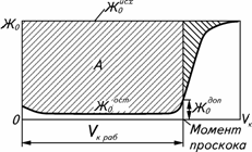 Рис. 1 - Сравнение полной динамической ПДОЕ и динамической обменной емкости ДОЕ. Заштрихованная площадь А соответствует ДОЕ, а вся площадь над кривой с учетом проскока солей – ПДОЕ