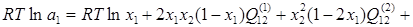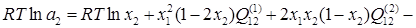 Если бы были известны мольные доли x и N при 25°С, то можно было бы с помощью (2.8) непосредственно вычислить значения Q при этой температуре. Однако при столь низкой температуре невозможно получить экспериментальных данных о координатах купола расслаивания. Дело в том, что наступление равновесия между фазами происходит, благодаря диффузии атомов, а в комнатных условиях она протекала бы экстремально долго (несколько сотен лет). Поэтому необходимо изучить температурную зависимость энергий смешения и экстраполировать её на уровень комнатных температур.