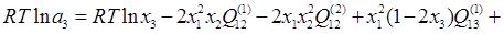 Если условно обозначить медь, как компонент 1, никель, как компонент 2 и бериллий, как компонент 3, то можно для каждого компонента этой тройной системы переписать уравнение (1.3), подставив в него уравнение (1.6) в следующем виде: