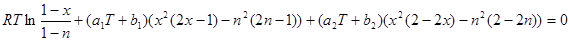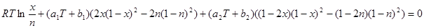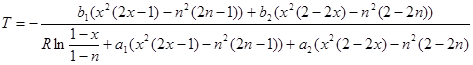 Параметра а и b определим из данных таблицы 2.4. Чтобы решить трансцендентное уравнение (2.21), нужно задаться одним из параметров x, или n и численными методами подобрать второй параметр, а затем определить и температуру по любому из уравнений (2.17) или (2.20).