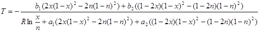 Задав таким образом зависимости Q=f(T) как полиномы второй степени и зафиксировав один из параметров x, N, T, нужно решить систему (2.8). В этом случае система будет состоять из двух трансцендентных уравнений, и решить их совместно можно только численными методами. Автору работы не удалось этого сделать.