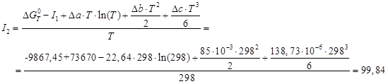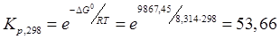 гк (298)= -18000 + 52,5·298 = -2355 кал/моль = -9867,45 Дж/моль;