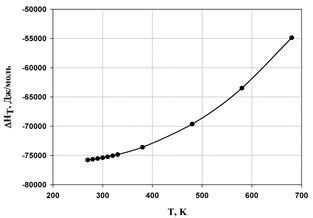 Рис. 1. Зависимость энтальпии реакции от температуры
