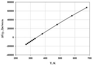 Рис. 3. Зависимость энергии Гиббса от температуры.