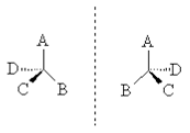 Оптическая изомерия появляется тогда, когда в молекуле присутствует асимметрический атом углерода; так называют атом углерода, связанный с четырьмя различными заместителями. Возможны два тетраэдрических расположения заместителей вокруг асимметрического атома. Обе пространственные формы нельзя совместить никаким вращением; одна из них является зеркальным изображением другой: