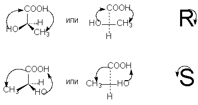Энантиомер именуется по направлению света, в котором вращает плоскость поляризованного света. Если вращение происходит по часовой стрелке (по отношению к наблюдателю, к которому направляется свет), то в названии энантиомера отмечается (+). Его зеркальный образ именуется (-). (+) - и (-) - изомеры также определяются как D - и L соответственно (от англ. Dextrorotatory - правоповоротный и Levorotatory - левоповоротный).