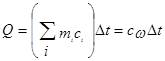 где mi – масса исследуемого вещества, калориметра и вспомогательных устройств (мешалки, ампулы, термометра); c – удельные теплоемкости исследуемого вещества, калориметра и вспомогательных устройств; сw - суммарная теплоемкость калориметрической системы. Уравнение (1) может быть записано