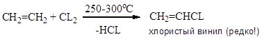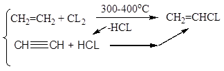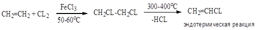 Процессы газофазные (получение хлористого аллила, 2,3 –дихлорпропана, хлористого винила и т.д.) – температура 250-5000С; конверсия низкая (около нуля).