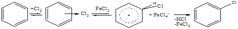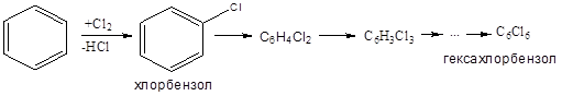 Дезактивирующее влияние хлора. Продукты: хлорбензол, дихлорбензолы, гексахлорбензол – растворители, инсектициды, фунгициды и т.д.