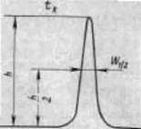 первоначально узкой полосы по мере прохождения ее через колонку, тем уже шик на выходе из колонки. ЧТТ характеризует число ступеней установления равновесия между подвижной и неподвижной фазами. ЧТТ легко определить по хроматограмме (рис. 1.2) последующей формуле: