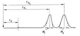 При рассмотрении разделения двух компонентов на хроматограмме и его оценке важным параметром является разрешение Rs, которое связывает времена выхода и ширину пиков обоих разделяемых компонентов (рис. 1.3):